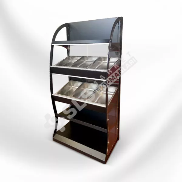 Müşterilerimize tam kapsamlı ürünler sunmaktayız: Tente gölgelik ya da aynalı zengin sunum, dayanıklı raflar, tel raflar, paslanmaz çelik raflar ve hem iç hem de dış alan dökme ürün sergilenecek stand çeşitleri