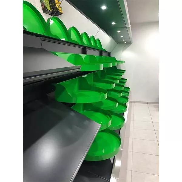- Görsellik : Meyve reyonu, sebze reyonu veya diğer adıyla manav reyonu olarak bilinen ürünlerin mutlak suretle markete uyum sağlaması gerekmektedir. SLS Endüstriyel tarafından üretilen manav reyonu ürünleri ise yılların vermiş olduğu deneyimlerle tasarlanmış ve çeşitli AR GE sonuçları neticesinde üretilmiştir.